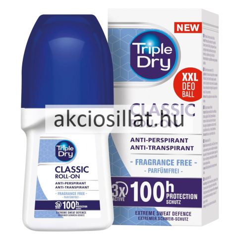 Triple Dry izzadásgátló deo roll-on rendelés Erős izzadásra - parfümmentes - 100 órás hatás, bizonyítottan akár 100 órás hatás nyújt az erőteljes hónalji izzadás ellen. A Triple Dry egy parfümmentes, antibakteriális izzadásgátló készítmény, mely bizony