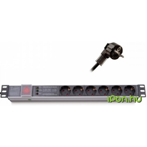 19" Elosztópanel 6x250V, túlfeszültség védelemmel 1U, 2,3m.