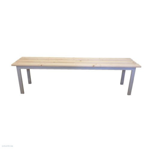 Kétoldalas, hátfal nélküli öltözőpad. Rendkívül masszív, szinterezett acél zártszelvény váz, műanyag kopótalpakkal, ülőlap alatti keresztmerevítővel. A váz 40 x 20 x 2 mm zártszelvényből készül, fix hegesztett kivitelben. Ülőfelület 3 db lekerekített szél