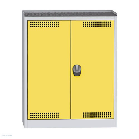 Vegyszer tároló, masszív, 50 cm mély, nagy teherbírású acéllemez szekrény. Kármentő tálca ráccsal és gyűjtő kármentő tálcával, 80 kg/ tálca teherbírással. 2 ponton záródó tanksapkazárral, az ajtó belül irattartó rekesszel, extra szellőzéssel az ajtókon al
