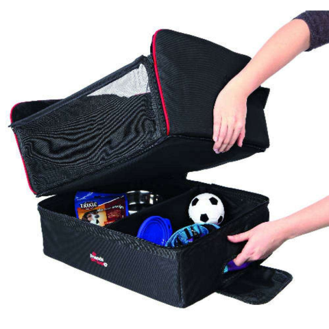 1322 - Trixie Friends on Tour autós kutyaülésKisebb kutyák számára tervezett autós ülés. Szíjakkal rögzíthető erős szerkezetű 'doboz', megemelt belmagassággal, így a kutyusnak lehetősége van kinézni az ablakon. Lehetőség van biztonsági övvel vaó rögzításre is, ráadásként pedig egy rövid belső póráz gondoskodik róla, hogy az utas ne ugráljon ki üléséből menet közben.Belseje rendkívül puha és kényelmes plüss, melynek hála hosszú utakhoz is bátran h