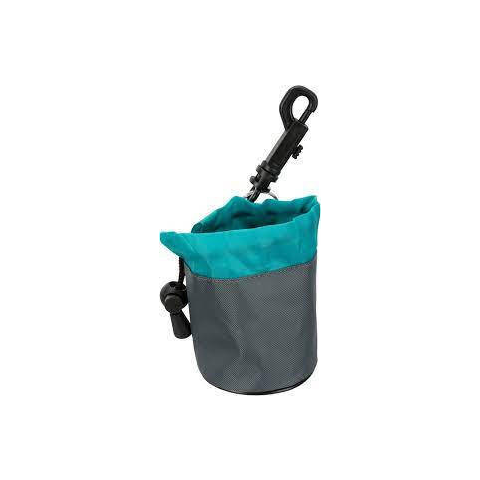 Trixie jutalomfalat tartó - poliészterből készült "Snack Bag", könnyen zárható, akár pórázra is csatolható, könnyen tisztítható.Méret: 7x9 cm