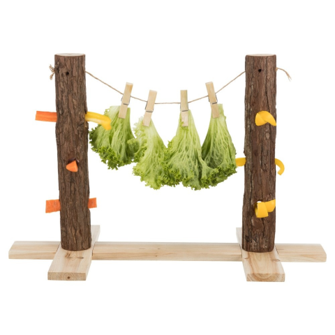 Ha igazán különleges és szórakoztató eledel adagolóval szeretné meglepni kedvenc rágcsálóját, akkor ez a termék tökéletes választás.A könnyű összeszerelés után zöldségeket, ágakat és egyéb jutalomfalatokat rögzíthet a csipeszekre, vagy a kialakított lyukakba. Ezzel a termékkel minden bizonnyal megtaláható a fajnak m
