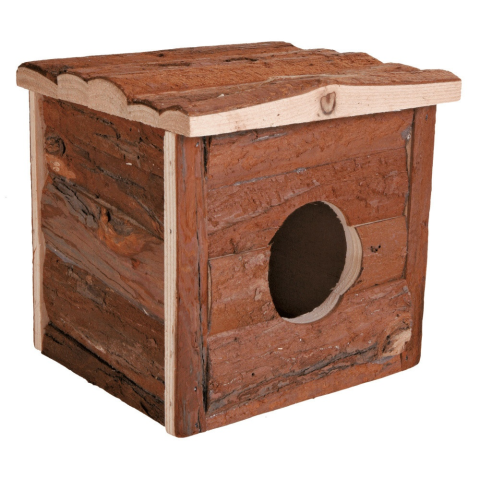 Kisrágcsáló ház és bújkáló. Természetes, kezeletlen fából készült vastag anyagú masszív termék a német Trixie-től. Mérete: 15x14x13cm (TRX62181)