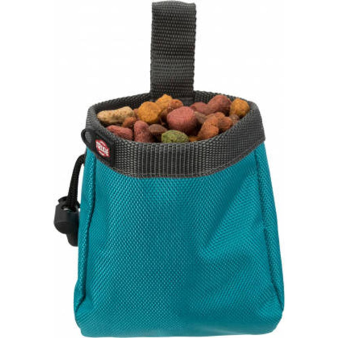 3227 - Trixie Baggy jutalomfalat tartó zsákocskaRoppant praktikus tároló a ropogtatnivalóknak, jutalomfalatoknak. Csattal vagy az erre készült hurokkal az övre helyezhető, a húzózsinórral pedig könnyen visszazárható. Erős, vízálló anyagból készült, így könnyen tisztítható. Vastagított pereme merev marad hogy a falatok könnyen adagolhatóak legyenek.Több színbenMéret: ø 10 × 14 cm