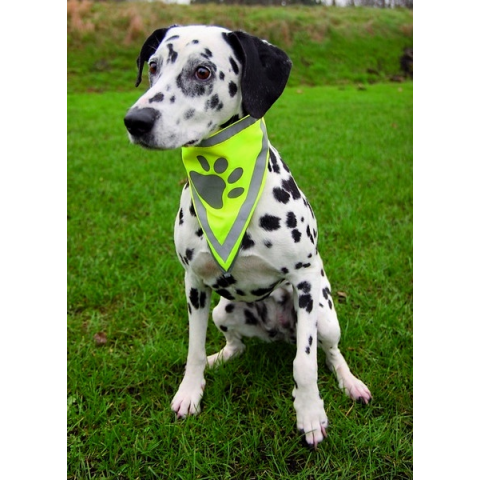 Biztonsági Kendő Kutyának (XS–S/22– 28cm) Trixie poliészter anyagú, tépőzáras, fényvisszaverő csíkokkal és mancs mintával díszített biztonsági kendő kutyáknak. 30 C°- on mosható. poliészter fényvisszaverő csíkok és mancs minta kampóval és hurokrögzítővel szín: neon sárga Méret: XS-SNyak kerülete: 22-28 cm