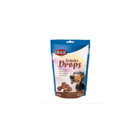 31613 - Trixie Schoko Drops csokifalatkák kutyáknakKutyák sázmára is fogyasztható csokoládéfalatkák, erősen csökkentett teobromin tartalommal és hozzáadott fontos vitaminokkal. Visszazárható zacskóban.Kiszerelés: 200 g