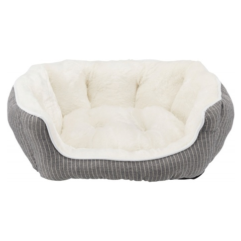 Trixie Davin extra pihe-puha, plüss/filc bélésű, peremes kutyafekhely csúszásgátló aljjal. Belseje krém, külső része szürke színű. Kézzel mosható. Két méretben kapható: 50 x 40 cm; 60 x 45 cm