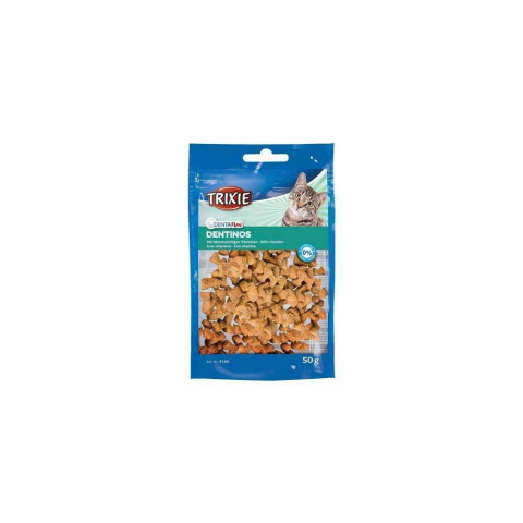 Trixie Denta Fun Dentinos - jutalomfalat (fogtisztítós) macskák részére (50g)- Speciális kialakításának köszönhetően tisztítja a fogakat- Visszazárható csomagolásKiszerelés: 50g