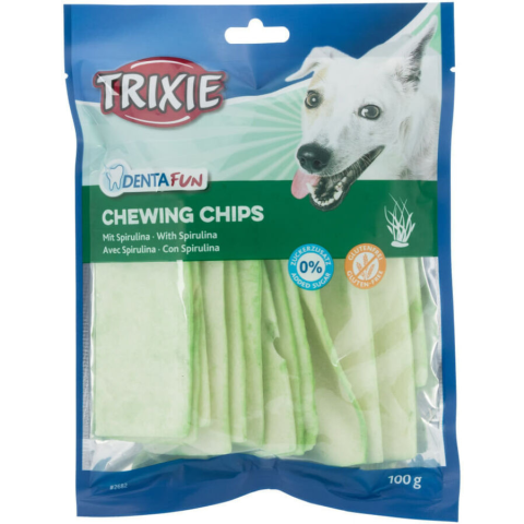 A Trixie Denta Fun Rágó Chips egy ízletes spirulinás jutalomfalat kutyusok számára.