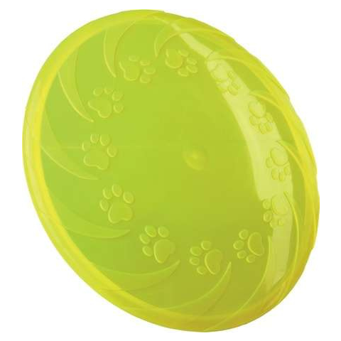 Ez egy vízen lebegő, hőre lágyuló műanyagból gyártott, rugalmas, mégis jó tartással bíró, áttetsző kutyafrizbi. A termék véletlenszerű színben kerül kiküldésre.