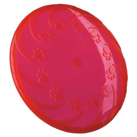 Ez egy vízen lebegő, hőre lágyuló műanyagból gyártott, rugalmas, mégis jó tartással bíró, áttetsző kutyafrizbi. A termék véletlenszerű színben kerül kiküldésre.