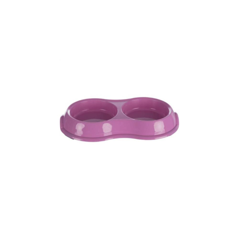 Trixie Double Bowl - Műanyag duplatál (vegyes színekben) macskák részére (0,2l /Ø11cm)Alacsony peremű, színes, műanyagtál, etetésre és itatásra is egyaránt alkalmas. Rövid orrú macskáknak ajánljuk Könnyű tisztítani. Mosogatógépben mosható!Több féle színben:-lila-szürke-v.kék-v.zöld