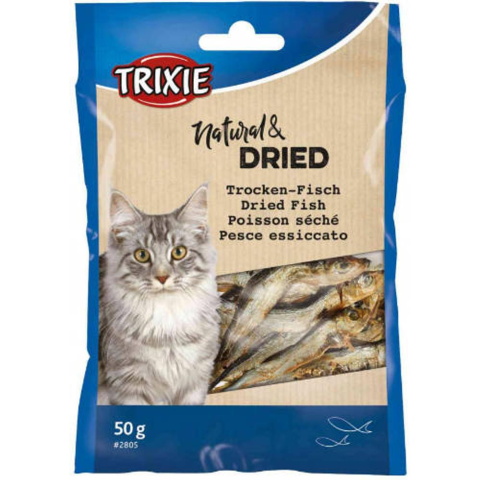 Trixie Dried Fisf - jutalomfalat (szárított hal) macskák részére (50g)Szárított, apró szardellák macskák jutalmazására. Teljesen természetes, hozzáadott összetevők nélkül, egészséges protein forrás a macskák számára.Kiszerelés: 50g