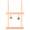 Fából és kötelből készül, kalitkába felfüggeszthető csengős játék madaraknak.