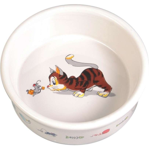 Trixie fehér kerámia tál macska-egér motívummal (0.2 liter / 11 cm)