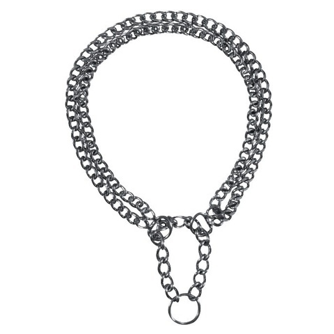 Fojtó Nyakörv 2 Soros (35cm/2,0mm) Trixie 2 soros kombinált fojtó nyakörv. Ideális kutyaiskolába és oktatási tevékenységekhez. A fojtó nyakörv a húzós kutyákra lett kifejlesztve, ami helyes használat mellett nem a kutya megfojtását szolgálja, hanem a gyors, rövid pórázrántásokkal korrigálni tudjuk a kutyát, amikor rohan vagy húz. Ha rendesen jön mellettünk lazul a nyakörv, ha elkezd húzni, vagy megijed, akkor megfeszül a nyakán. króm Méretek: 35