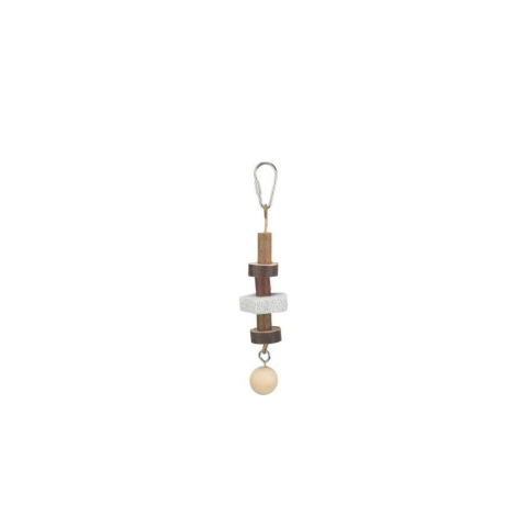Trixie Gnawing Wood with Lava Stone - játék (csőrkoptató) díszmadarak részére (16cm)- Gömbbel felszerelt, fából készült, kalitkába akasztható játék madaraknak