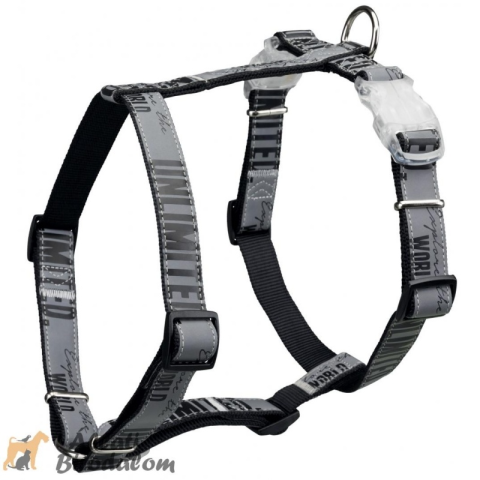 1 kép Trixie Hám H Explore villanófénnyel L-XL fekete/fényvisszaverő 75-120mm/25mm