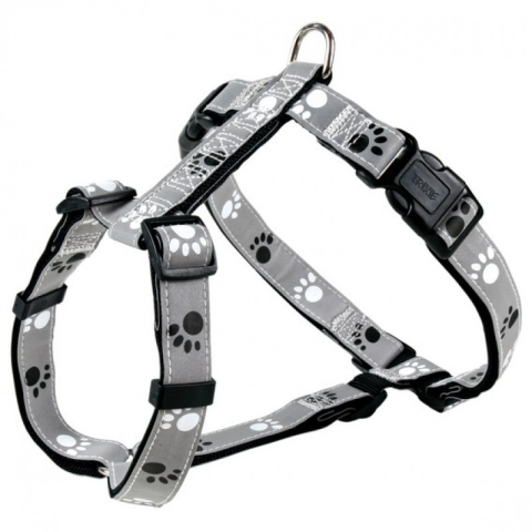 Reflect Hám (XS-S) Trixie Reflect kiváló minőségű fényvisszaverős, extra erős, nylon, tappancs mintás, teljesen állítható, textil hám kutyáknak szürke/fekete színben. felül: műanyag / alsó: heveder erősen fényvisszaverő extra robusztus teljesen állítható a hevederek rugalmasan állítható helyzete hevederes szalag: fekete motívumszíj: ezüstszürke mancsokkal Méretek: 30-40 cm / 15 mmGyomorkerület: 30-40 cmSzín: fekete / ezüstszürke