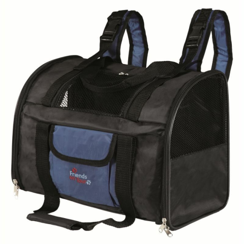 A hálós oldalai miatt hordozóként is használható. Elől és oldalt nyitható, külső zsebbel és integrált rövid pórázzal kiegészített.