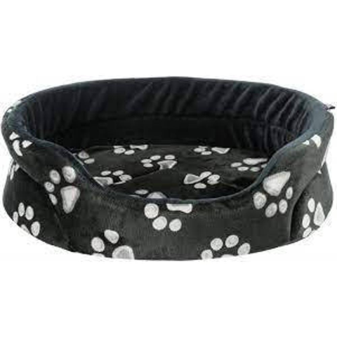 Trixie Jimmy bed - peremes, ovális fekhely (fekete,mintás) macskák részére (75x65cm)- puha plüss- poliészter huzat- párnával- kifordítható párnával- csúszásmentes alj