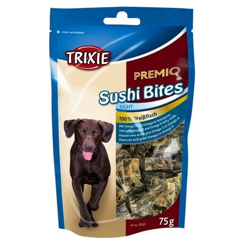 Trixie Premio Sushi Bites Light jutalomfalat A Trixie Premio Sushi Bites Light tökéletes választás a főétkezések közötti nassoláshoz. Kizárólag 100%-ban vékonybajuszú tőkehalból készül, így változatos és ínycsiklandó csemege. A rágcsálnivaló gazdag Omega-3 és -6 zsírsavakban, amelyek hozzájárulnak az egészséges bőr és fényes szőrzet kialakulásához. Emellett könnyen emészthető, mentes a tartósítószerektől, és támogatja a kutya általános jó közé