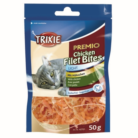 Kiegészítő eledel macskák részére. Összetétel: csirke (72%), glicerin, szójafehérje, hal, só, szorbitol. Analitikai alkotórészek: nyersfehérje 49%, nyershamu 3%, nyerszsír 1,5%, nyersrost 1%, nedvesség 26%. Adagolás: jutalomként adható a normál étkezések között. Csak takarmányozási célra! Biztosítson kedvencének mindig friss, tiszta ivóvizet!