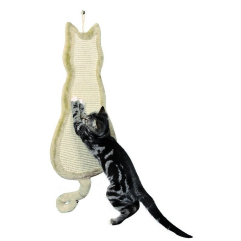 Macska Formájú Kaparófa  Falra szerelhető, macska formájú kaparófa, amely egy kiváló eszköz a macskák karmainak élesítésére és kaparási ösztönük levezetésére. Ezáltal megóvhatja bútorait és a falakat a sérülésektől. A szizálkender nagyon erős természetes szál amely segít eltávolítani a macska karmának felső rétegét ezáltal megakadályozza a karom benövését. A lakás bármely részén elhelyezhető.   szizál / plüss (poliészter) hátul szövettel