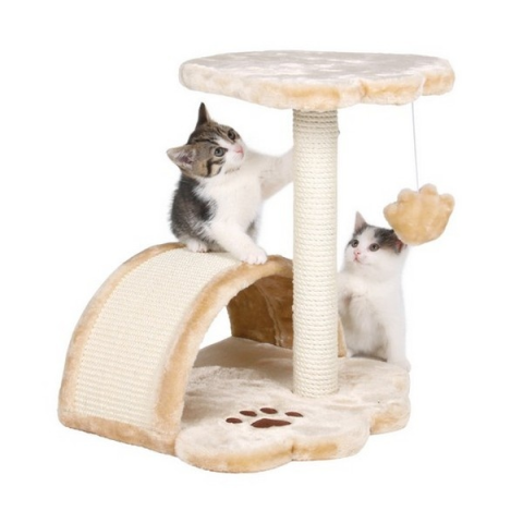 Vitoria Kaparófa Vitoria kiváló minőségű tappancs formájú, bézs színű plüss és szizál borítású kaparófa macskáknak, szizál oszloppal,ülőkével, bújóval és logó labda játékkal. A macskáknak koptatniuk kell a karmaikat nehogy azok elakadjanak és ezáltal komolyabb sérülések történjenek. A kaparófa megfelelő helyet biztosít a macska számára a karmok koptatására anélkül hogy a bútorokban vagy a szőnyegben kárt tenne. plüss borítás (poliészter