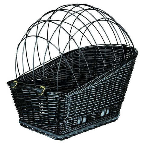 Fűzfa Kosár Kerékpárra (35x49x55cm) Trixie kiváló minőségű fekete színű kerékpárra szerelhető strapabíró, stabil fűzfa kosár műanyag bevonatú háló tetővel, velúr mosható párnával. fűzfa galvanizált dróthálóval, műanyag bevonattal a háziállat szállításához a kerékpárállványon (szélessége 10,5–14,5 cm) velúr megjelenésű párna, szürke párna: kézzel mosható szín: fekete Méretek: 35 × 49 × 55 cm- ig: 8 kg-igMagasság: 49 cmSzín: fek