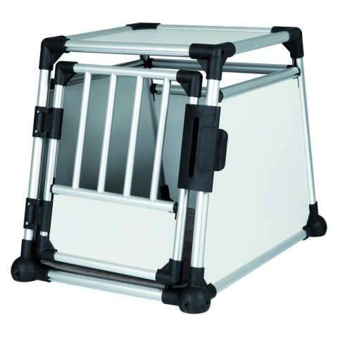Aluminium Ketrec M (55x62x78cm) Trixie szállítóketrec autóba, erősített minőségi alumínium kerettel, biztonsági zárral az autó csomagtartójához kialakított formában, ketrec párnával textil pántokkal a rögzítéshez. alumínium kerettel erős minőségű, biztonságos és nagyon csendes A kompakt panelek tiszta állványt és nagyobb biztonságot nyújtanak a jó légáramlás érdekében széles távolságban elhelyezett rudak, amelyek nem akadályozzák a kilátást a