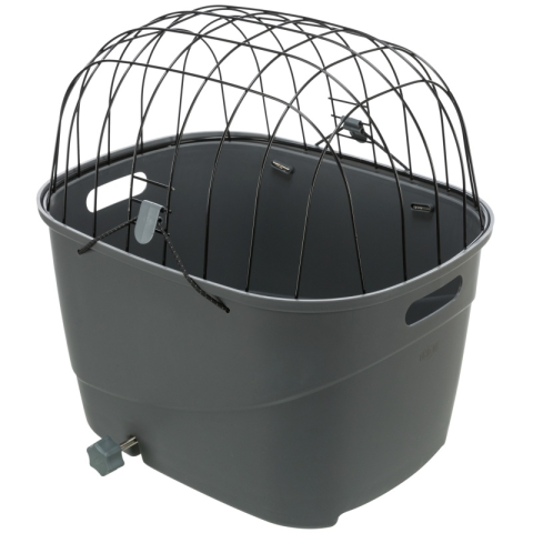 Műanyag szállítókosár kerékpárraFontos információ: Kérjük ügyeljen a szállítókosár maximális terhelhetőségi kapacitására. Első lépésként ismertesse meg kutyáját a szállítókosárral és szánjon megfelelő időt rá. Ha szükséges gyakorolja a kosárral a kerékpározást először a ked