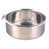 Rozsdamentes tál krómozott tartóval madárkalitkába. A tartó segítségével könnyedén rögzíthetjük a kalitkára.