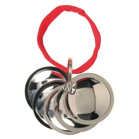 Kutyanevelés hangokkal - 5 hajított fémkorong szalagra fűzve, a hangjelzések metódusán alapuló, gyengéd nevelés szolgálatában; használati utasítással együtt.