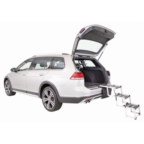 Ez a Trixie összecsukható lépcső még nedves körülmények között is csúszásmentes lépéseket garantál. Egyszerűen és könnyen kezelhető. Összecsukva helytakarékosan elhelyezhető akár a csomagtartóban is. A lépcső oldalára erősített fogantyú segíti a szállítást. Emellett a lökhárító védelmét gumitalpak gar