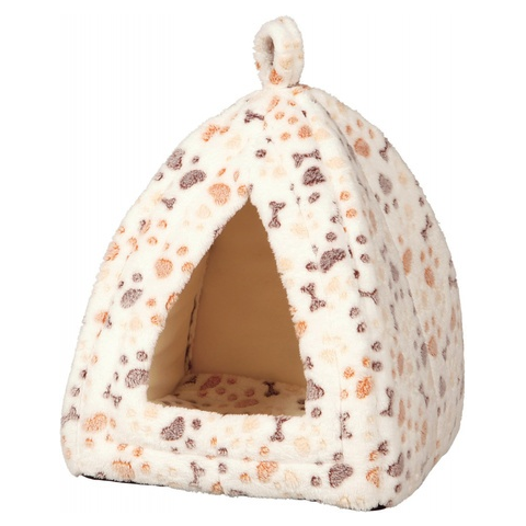 Trixie Lingo puha plüss odú, bújó macskáknak és kistestű kutyáknak. Fehér-barna-bézs színben, tappancsos és csontos mintával.
