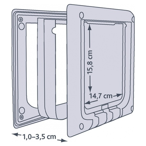 Macska Ajtó Mágneses 4utas (24,4x21,1cm) Trixie kiváló minőségű műanyag, fehér színű 4 utas macskaajtó, speciális tömítő és mágnes zárral, átlátszó fedéllel üvegajtóba. műanyag az idegen háziállatokat kívül tartja mágnesel, a nyakörvre kell rögzíteni átlátszó fedél, csendes fellépés 360 ° kerületi tömítéssel (TPR) és mágneses kapcsokkal csavarral mélysége 10–35 mm kibővíthető további alagút elemekkel elemmel működtetett (a 9 V-os akku