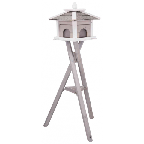 Kültéri álló, fából készült madáretetőA 4 kivehető adagolókamra tisztán és szárazon tartja a takarmányt.A különálló takarmányadagoló tálcák lehetővé teszik több takarmánytípus egyidejű kínálását.8 ülőrúddal, melyek faggyúgolyó tartóként is használhatók.Egy extra etetőtálc