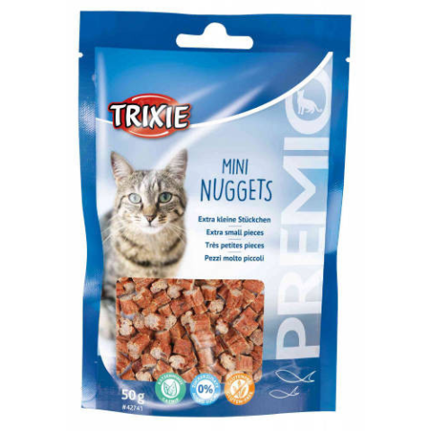 Kiváló minőségű, tonhalból készített jutalomfalat macskák részére. Trixie Mini Fish Nuggets - jutalomfalat (tonhal) macskák részére A Trixie Mini Fish Nuggets egy kiváló minőségű jutalomfalat, amely tonhalból és macskamentából készült, így különösen v