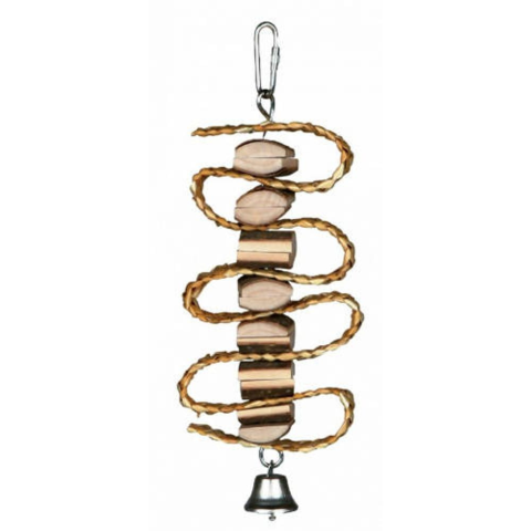 Trixie Nibbling Toy - játék (szalmaszalaggal) díszmadaak részére (21cm) fa kampóval és szalmaszalaggal 100%-ban természetes anyagokból készült kéreg fa