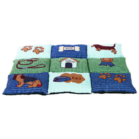 Patchwork Fekhely (80x55cm) Egyedi megjelenésű, patchwork mintás, puha mikroszálas anyagú párna kutyák számára. Puha, meleg fekhely kemény padlózatokon. Csúszásgátló poliészter aljjal és poliészter töltettel. Kézzel mosható. mikroszálas tűzdelt poliészter gyapjú töltelék meleg és puha hely hideg és kemény padlón csúszásmentes alj Méretek: 80 × 55 cmSzín: kék / zöld