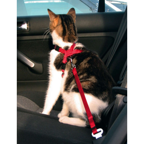 Trixie biztonsági öv és macskahám, amely az autók biztonsági öv csatlakozójába csatolható, de önálló hámként is funkcionál. Erős, puha nylon anyagból készül. A mellkasi szíj szivaccsal párnázott, s így megvédi a macskát a hirtelen fékezések okozta sérülésektől.