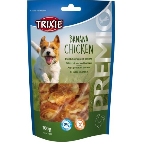 Kiváló minőségű, nyers, szárított csirkehússal körbetekert banándarabok. Kölyökkutyáknak és felnőtt kutyáknak egyaránt ajánlott. Hozzáadott cukor nélkül készül, illetve gluténmentes.