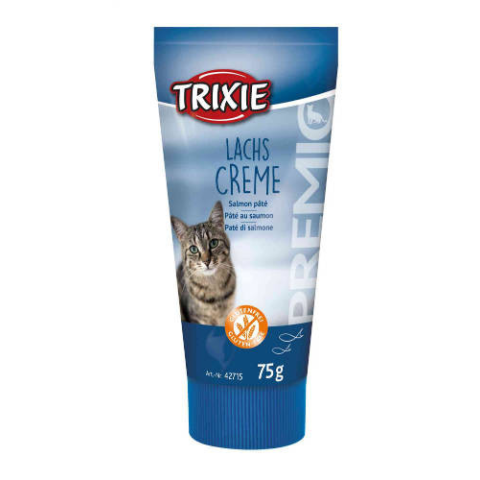 Ez a krém tökéletes választás, ha macskádat egészséges és ízletes jutalomfalattal szeretnéd kényeztetni, amely támogatja a táplálkozását és hozzájárul a megfelelő hidratációhoz. Trixie Premio Lachs Creme - jutalomfalat krém (lazac) macskák részére (75g