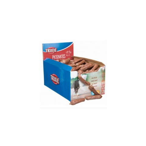 200 db-os kiszerelés!Trixie PREMIO Picknicks - jutalomfalat (marha) kolbász (8cm) 8g/200dbKétszáz ellenállhatatlanul finom kolbászka láncolata. Melyik kutya mondana nemet erre?A kolbászkák magas, legalább 94 %-os hústartalommal bírnak. Levegőn szárított, vitaminokban dús, gluténmentes kutyacsemege.Íz: marhásKiszerelés: 8g / db, 200 db / csomag