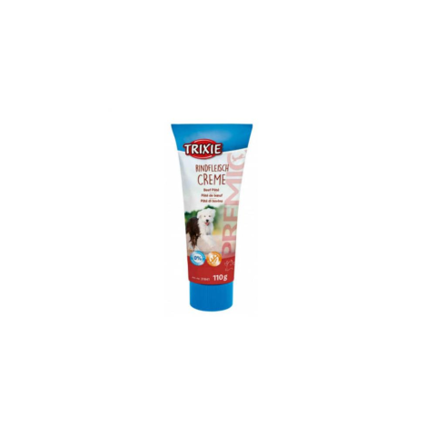 Trixie Premio Rindfleisch Creme - jutalomfalat krém (marhahús) kutyák részére (110g)Tubusból könnyedén adagolható, rendkívül finom és egészséges csemege kutyáknak, akik különösen nagy örömmel fogadják. Segítségével könnybben adható be nekik gyógyszer, amit ezzel a pástétommal együtt boldogan nyelnek majd le. Glutén- és cukormentes termék.Kiszerelés: 110 g
