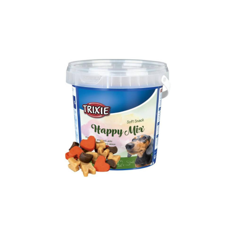 Trixie Soft Snack Happy Mix - jutalomfalat (csirke,bárány,lazac) kutyák részére (500g)Válogatott jutalomfalatok keveréke, csirke, bárány és lazac ízesítéssel. Igazi csemege főleg kisebb testű kutyák, vagy kölykök számára. Nem tartalmaz hozzáadott cukrot és a praktikus visszazárható vödörnek köszönhetően tartósan friss marad.Kiszerelés: 500 g