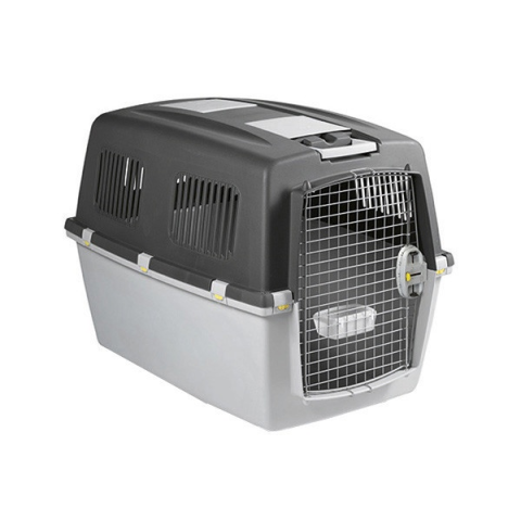 TRIXIE Szállító Gulliver VII Trixie Stefanplast Gulliver 7 IATA – Fémajtóval ellátott, kiváló minőségű műanyag szállítóketrec nagytestű kutyák számáraAjánlott max. 50kg súlyú állatoknak. Pl. Németjuhásznak, Dobbermannak, Rottweilernek és más nagytestű kutyáknak.A Trixie Stefanplast Gulliver 7 IATA szállítóbox önsúlya 11,3kg. Mérete: 73x75x104cm Színe: Szürke• Magas minőségi követelményeknek is megfelel: a minőségi műanyag és a rács nem sorjás,