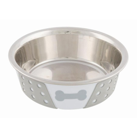 1 kép Trixie szilikonnal bevont fém tál 0,4l/14cm fehér/szürke